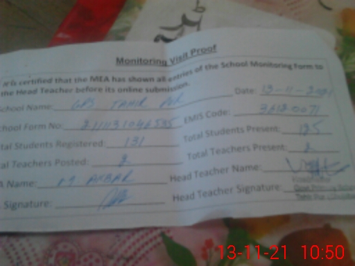 | EMIS Code: 36120071 | Name of School: GPS TAHIR PUR P/O & TEH.SHUJABAD | |||