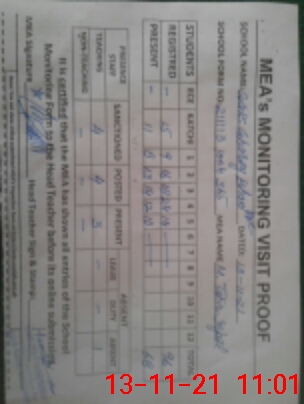 | Monitoring Date: 13-11-2021 | Start Time: 13-11-2021 10:04 AM | End Time: 13-11-2021 11:05 AM | Name of MEA: M.Ta**** Iq**** (S**** | |