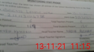 | Attendance Register | Head Teacher | MEA with School | Visit Proof |