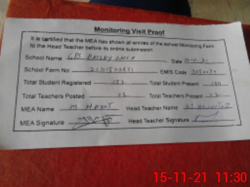 | Certified that this School was Inspected by the Undersigned MEA/DMO Today and the Information Stated Above is as Per Record. | |||||