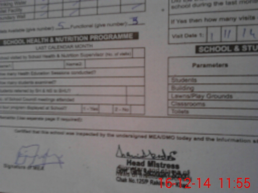 | Certified that this School was Inspected by the Undersigned MEA/DMO Today and the Information Stated Above is as Per Record. | |||||