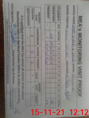 | Certified that this School was Inspected by the Undersigned MEA/DMO Today and the Information Stated Above is as Per Record. | |||||