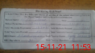 | Monitoring Date: 15-11-2021 | Start Time: 15-11-2021 10:53 AM | End Time: 15-11-2021 11:54 AM | Name of MEA: Mu**** Ub**** Ul**** | |