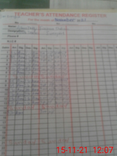| Name: SA**** TU**** Designation: (School Headmaster's/Headmistress's) PST Phone/Cell Number: 03**** |