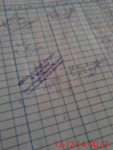 | Monitoring Date: 13-12-2014 | Start Time: 13-12-2014 08:23 PM | End Time: 13-12-2014 08:39 PM | Name of MEA: Ab**** Sa**** Wa**** (R**** | |