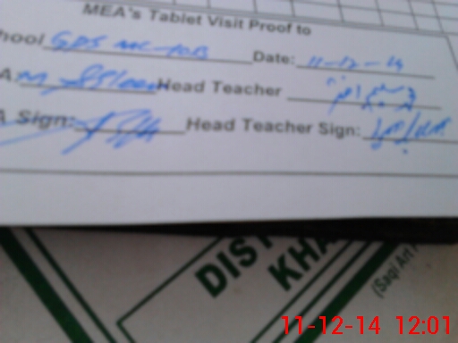 | Attendance Register | Head Teacher | MEA with School | Visit Proof |