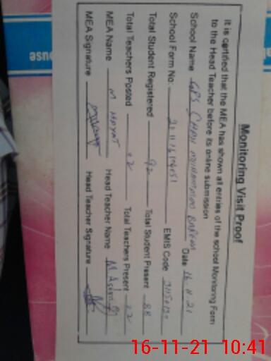 | Certified that this School was Inspected by the Undersigned MEA/DMO Today and the Information Stated Above is as Per Record. | |||||