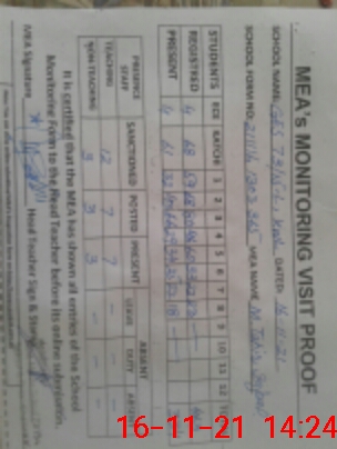 | Monitoring Date: 16-11-2021 | Start Time: 16-11-2021 01:03 PM | End Time: 16-11-2021 02:26 PM | Name of MEA: M.Ta**** Iq**** (S**** | |