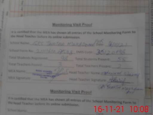 | Certified that this School was Inspected by the Undersigned MEA/DMO Today and the Information Stated Above is as Per Record. | |||||