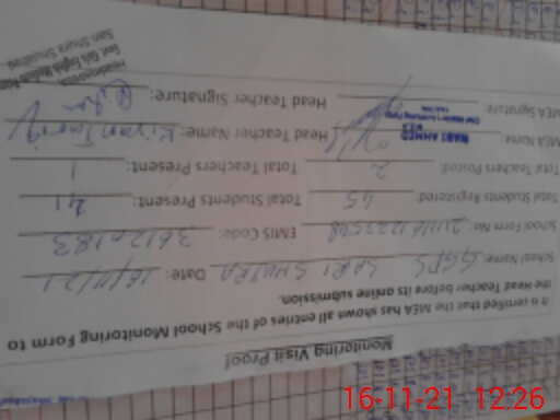 | Name: Ki**** Ta**** Designation: (School Headmaster's/Headmistress's) PST Phone/Cell Number: 03**** |