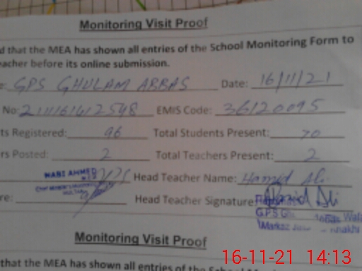 | EMIS Code: 36120095 | Name of School: GPS GHULAM ABAS WALA JALAL PUR KHAKHI TEH.SHUJABAD | |||