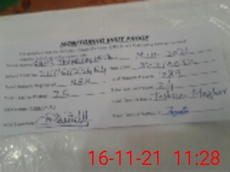 | Monitoring Date: 16-11-2021 | Start Time: 16-11-2021 10:17 AM | End Time: 16-11-2021 11:30 AM | Name of MEA: Gh**** Al**** | |