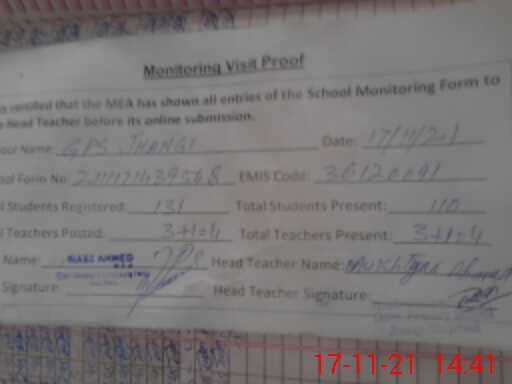 | EMIS Code: 36120091 | Name of School: GPS JHANGI P/O BAGRAIN TEH SHUJABAD | |||
