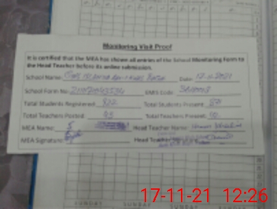 | Attendance Register | Head Teacher | MEA with School | Visit Proof |