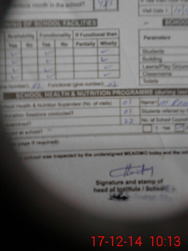| School Visited by School Health & Nutrition Supervisor (No. of Visits) | 1 | Name1: | Muhammad Ramzan | Name2: | |