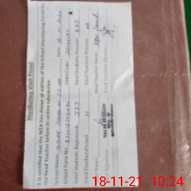 | Monitoring Date: 18-11-2021 | Start Time: 18-11-2021 09:28 AM | End Time: 18-11-2021 10:32 AM | Name of MEA: Ta**** Hu**** | |