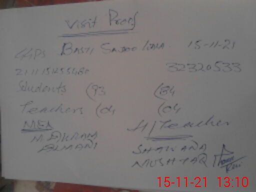 | EMIS Code: 32320533 | Name of School: GGPS BASTI SAJHOO WALA | |||
