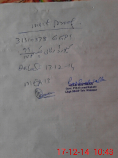 | Monitoring Date: 17-12-2014 | Start Time: 17-12-2014 10:22 AM | End Time: 17-12-2014 10:44 AM | Name of MEA: Mu**** As**** -KP**** | |