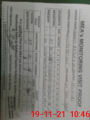 | Monitoring Date: 19-11-2021 | Start Time: 19-11-2021 09:21 AM | End Time: 19-11-2021 10:47 AM | Name of MEA: M.Ta**** Iq**** (S**** | |