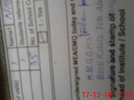 | School Visited by School Health & Nutrition Supervisor (No. of Visits) | 1 | Name1: | Nasir | Name2: | No |