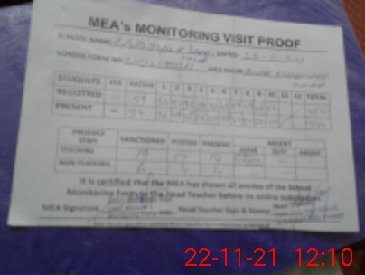 | Attendance Register | Head Teacher | MEA with School | Visit Proof |