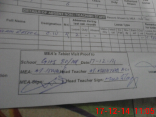 | Attendance Register | Head Teacher | MEA with School | Visit Proof |