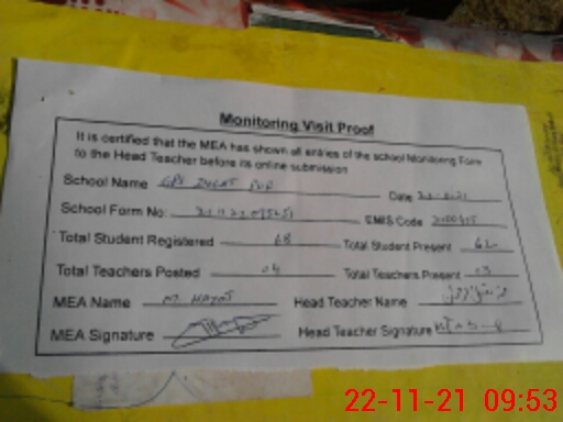 | Attendance Register | Head Teacher | MEA with School | Visit Proof |