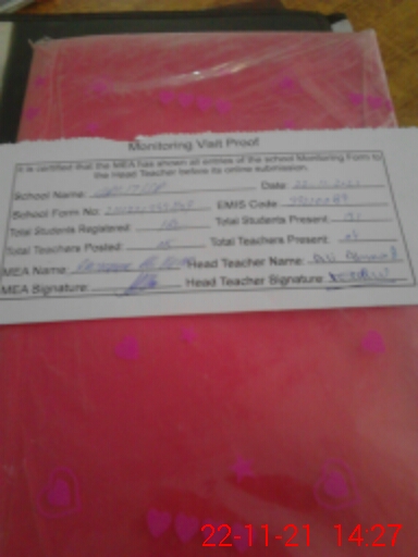 | Attendance Register | Head Teacher | MEA with School | Visit Proof |