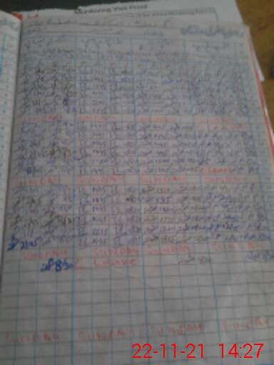 | CNIC | Full Name | Designation | R/C | Absence During Last Calender Month |