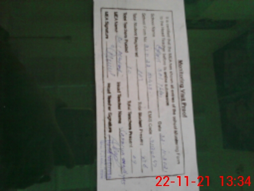 | Attendance Register | Head Teacher | MEA with School | Visit Proof |