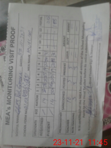 | Attendance Register | Head Teacher | MEA with School | Visit Proof |