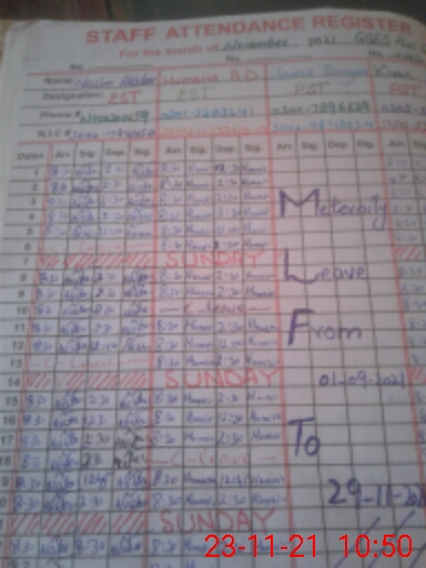 | 36**** | Sa**** Ra**** | PST | Regular | 0 | 0 | 0 | 0 | 0 | 0 | 0 | 0 | 0 | Maternity |