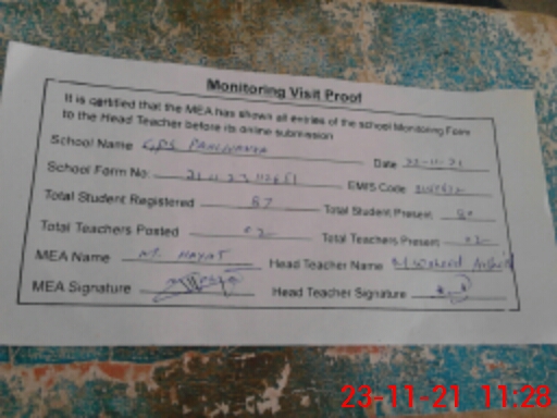 | EMIS Code: 31150432 | Name of School: GPS PAHLWANKA | |||