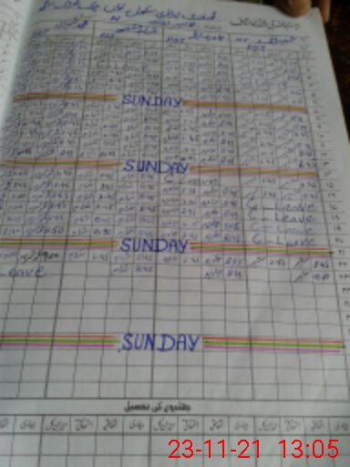 | CNIC | Full Name | Designation | R/C | Absence During Last Calender Month |