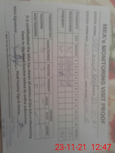 | Attendance Register | Head Teacher | MEA with School | Visit Proof |