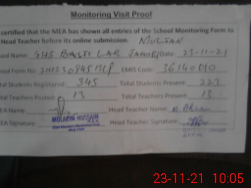 | Certified that this School was Inspected by the Undersigned MEA/DMO Today and the Information Stated Above is as Per Record. | |||||