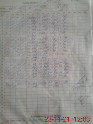 | CNIC | Full Name | Designation | R/C | Absence During Last Calender Month |