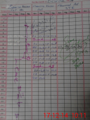 | CNIC | Full Name | Designation | R/C | Absence During Last Calender Month |