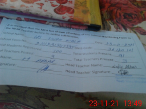 | EMIS Code: 36120101 | Name of School: GPS SINDH WALA MOZA PUNJANI P/O LASURI | |||