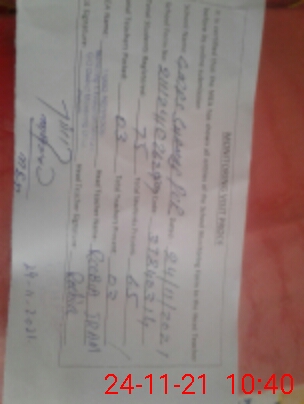 | School Visited by School Health & Nutrition Supervisor (No. of Visits) | Name1: | UMM E LAILA | Name2: | ||