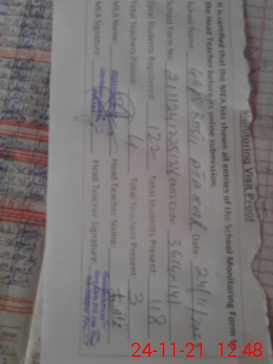 | Attendance Register | Head Teacher | MEA with School | Visit Proof |