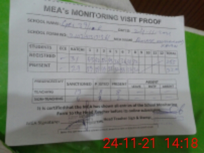 | Attendance Register | Head Teacher | MEA with School | Visit Proof |