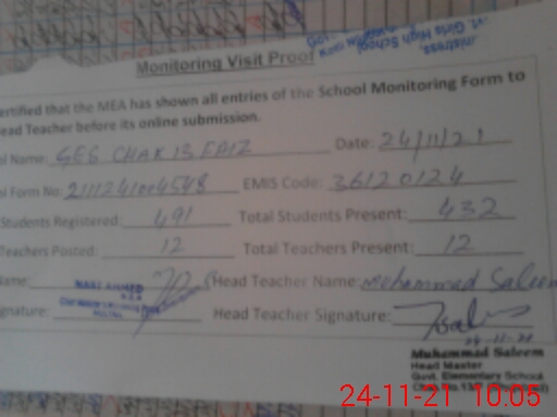 | EMIS Code: 36120124 | Name of School: GES CHAK NO.13 FAIZ | |||