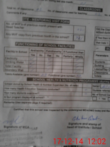 | Certified that this School was Inspected by the Undersigned MEA/DMO Today and the Information Stated Above is as Per Record. | |||||