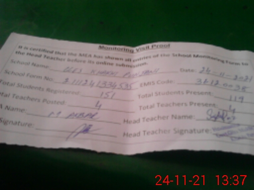 | EMIS Code: 36120038 | Name of School: GGES KHAKHI PUNJANI SHUJABAD | |||
