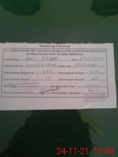 | Certified that this School was Inspected by the Undersigned MEA/DMO Today and the Information Stated Above is as Per Record. | |||||