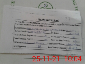 | Monitoring Date: 25-11-2021 | Start Time: 25-11-2021 09:19 AM | End Time: 25-11-2021 10:08 AM | Name of MEA: Mu**** Hu**** | |