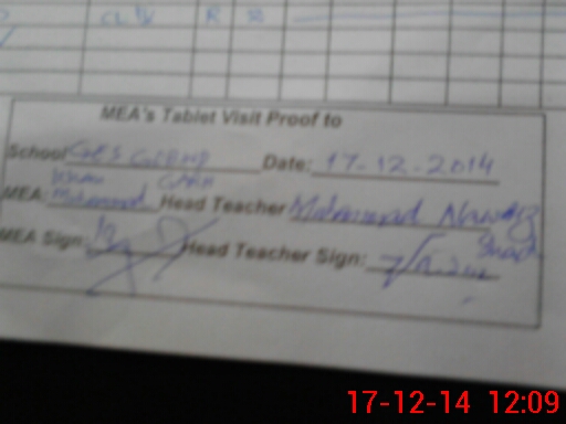 | Attendance Register | Head Teacher | MEA with School | Visit Proof |