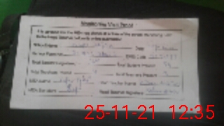 | Monitoring Date: 25-11-2021 | Start Time: 25-11-2021 12:20 PM | End Time: 25-11-2021 12:35 PM | Name of MEA: Za**** Iq**** BN**** | |