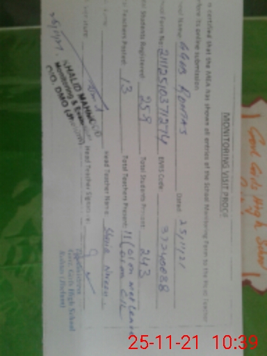 | EMIS Code: 37240038 | Name of School: GGHS ROHTAS | |||